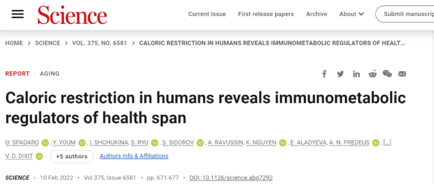 2022年发表在顶级期刊《科学》上的一项接洽中,好意思国耶鲁大学的接洽团队通过2年的临床磨练考证了恰当死心热量摄入对东谈主的益处。