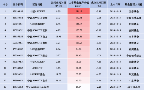 Wind数据涌现,甘休11月18日,已上市的13只中证A500ETF范畴达到1362亿元。撤退10月上市的首批中证A500ETF基金,中原A500ETF基金、广发中证A500ETF龙头、中证A500ETF易方达永诀于11月15日、11月18日、11月19日上市。
